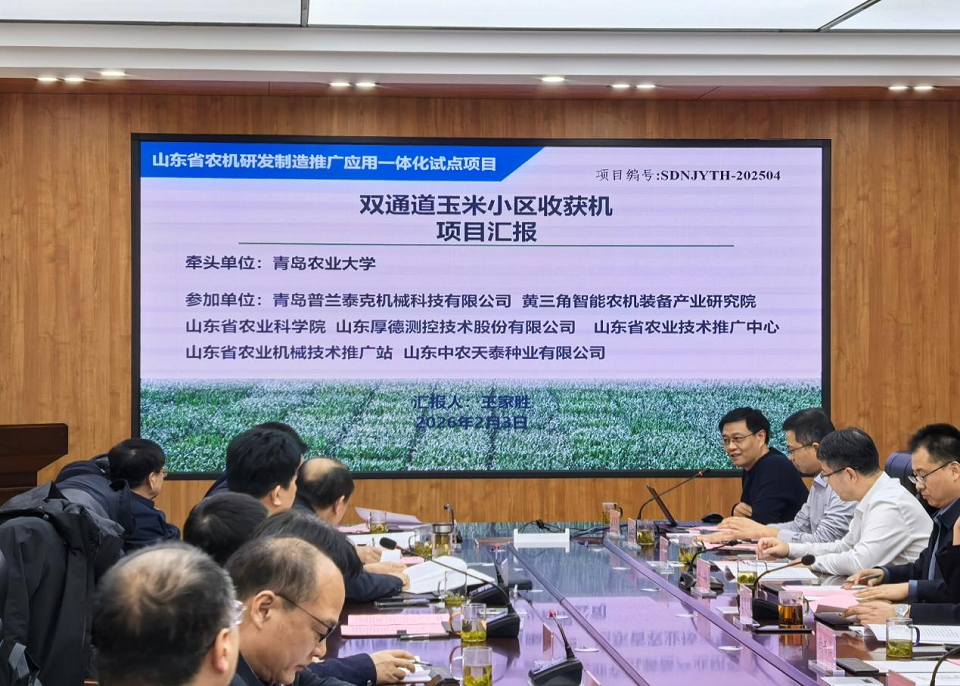 2026年2月3日,山东省农机研发制造推广应用一体化试点项目“双通道玉米小区收获机”启动会在伟德国际1946会议室召开。该项目由伟德国际1946牵头承担,青岛普兰泰克机械科技有限公司等四家单位协同参与。国内相关领域行业专家、山东省农业农村厅分管领导以及项目组成员出席本次会议。