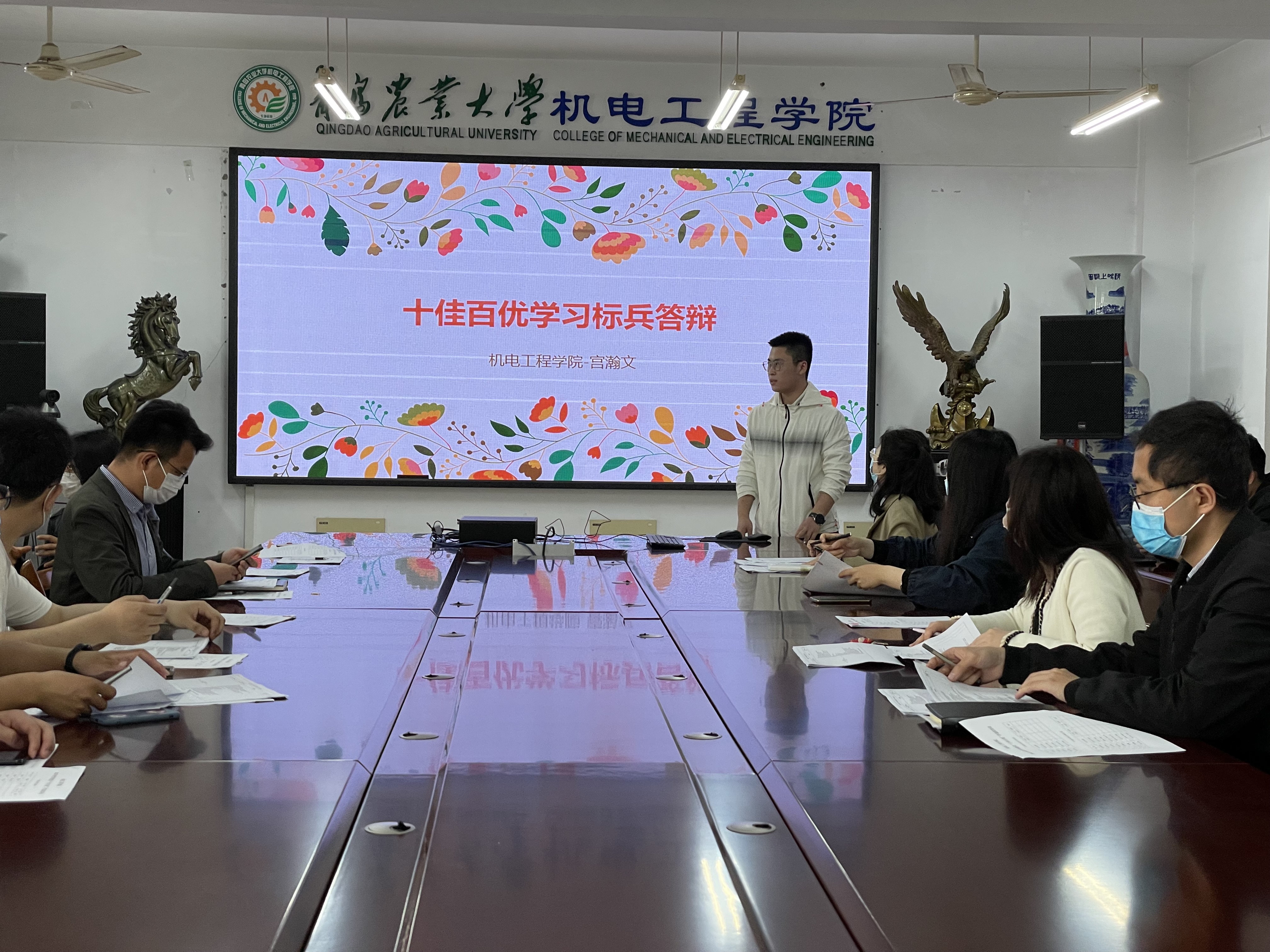 本次会议首先公布了申报情况和资格初审结果,经现场PPT答辩展示和公司评审等环节,最终推荐15号楼312和3号楼629宿舍为“百优学风宿舍”;宫瀚文等5人为百优学习标兵;纪凯旋等7人为“百优员工干部”;朱九凯等7人为“百优自强之星”。推荐15号楼312为“十佳学风宿舍”;电气工程及其自动化2003班为“十佳学风班级”;宫瀚文为“十佳学习标兵”;朱九凯为“十佳自强之星”;纪凯旋为“十佳员工干部”参加公司评选。