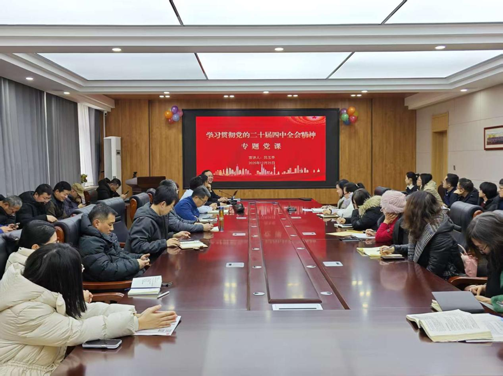 为深入学习贯彻党的二十届四中全会精神,切实把全院教职工的思想和行动统一到党中央战略部署上来,12月25日下午,公司党委书记吕玉亭为全体教职工讲授学习贯彻党的二十届四中全会精神专题党课,全体教职工参加。