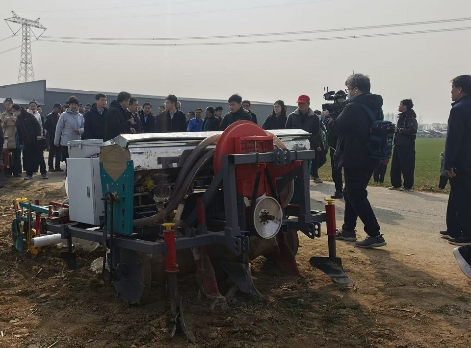 王家胜教授团队自主研发的花生单粒精量智能播种机是“十四五”国家重点研发计划“花生高质高效智能化播种技术装备创制与应用项目”的阶段性成果。该装备集起垄、施肥、播种、覆膜、喷药、播深仿形等功能于一体,实现了花生单粒精量播种作业,具备作业精度高、智能化水平高等特点,能够有效提升花生播种质量和作业效率,降低花生用种成本,将为推动我国花生生产机械化、智能化升级发展起到重要的推动作用。