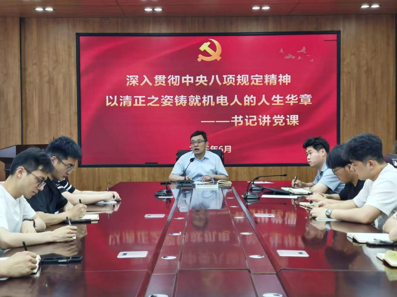 为强化毕业生党员理想信念教育,筑牢思想根基,引导毕业生党员在新征程中践行初心使命,6月12日下午,伟德国际1946于工程楼216举办2025届毕业生党员主题党课。伟德国际1946党委书记焦磊以“深入贯彻中央八项规定精神,以清正之姿铸就机电党员的人生华章”为主题讲授党课,2025届全体毕业生党员参会。